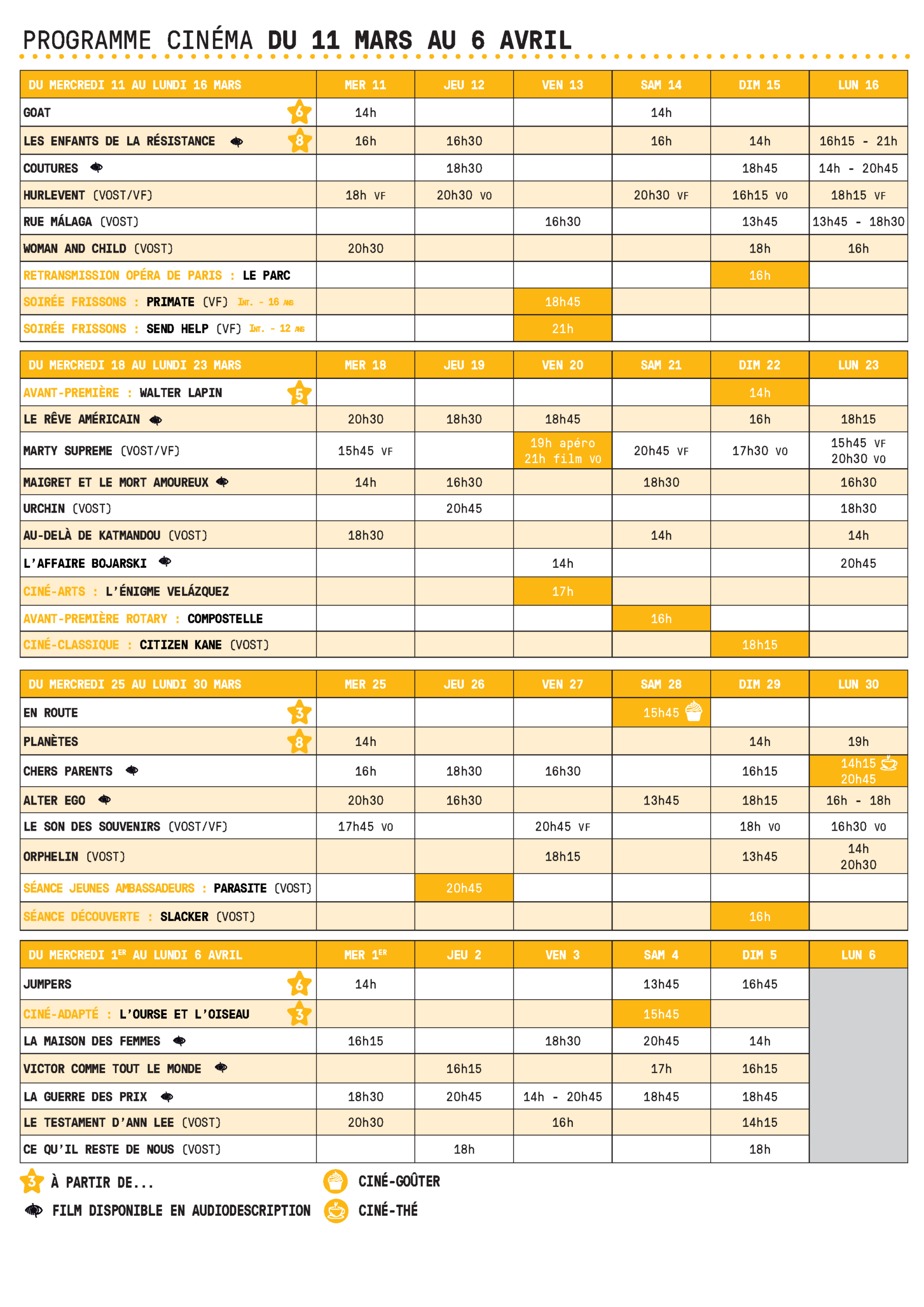 Cinéma Vous êtes ici : Accueil > Mes loisirs > Culture > Théâtre et Cinéma Jacques Prévert > Cinéma Programme cinéma du 11 mars au 6 avril Agenda Cinéma Ciné-Gazette du 11 mars au 6 avril Billetterie